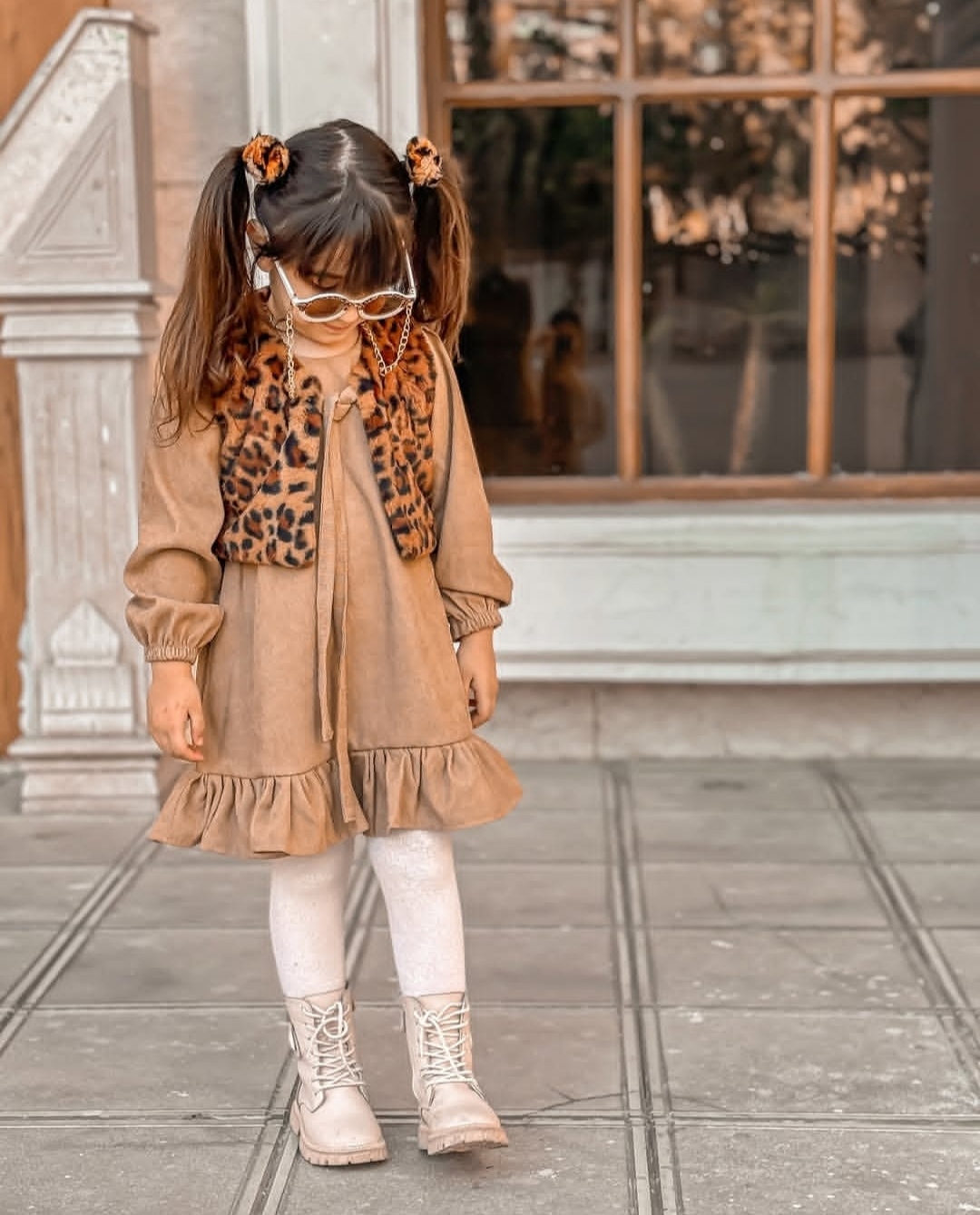 پیراهن و جلیغع خز پلنگی (۱الی ۶سال)