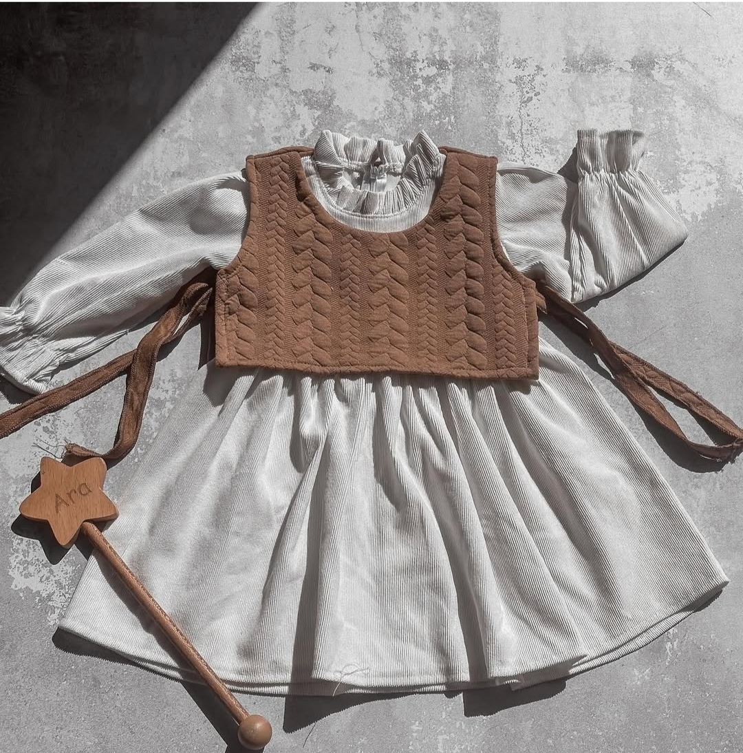 پیراهن موسلین نسکافه ای (۶ماه الی ۶سال)