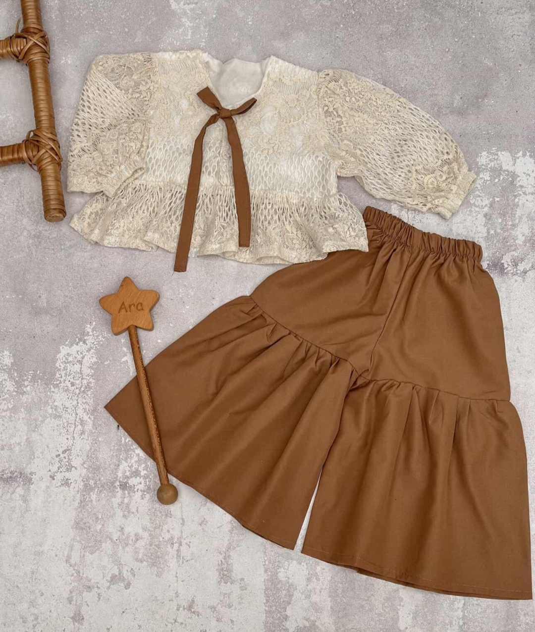 ناموجودتاپ و شلوار مام ست لینن و تور دخترانه (۱سال الی ۶سال)